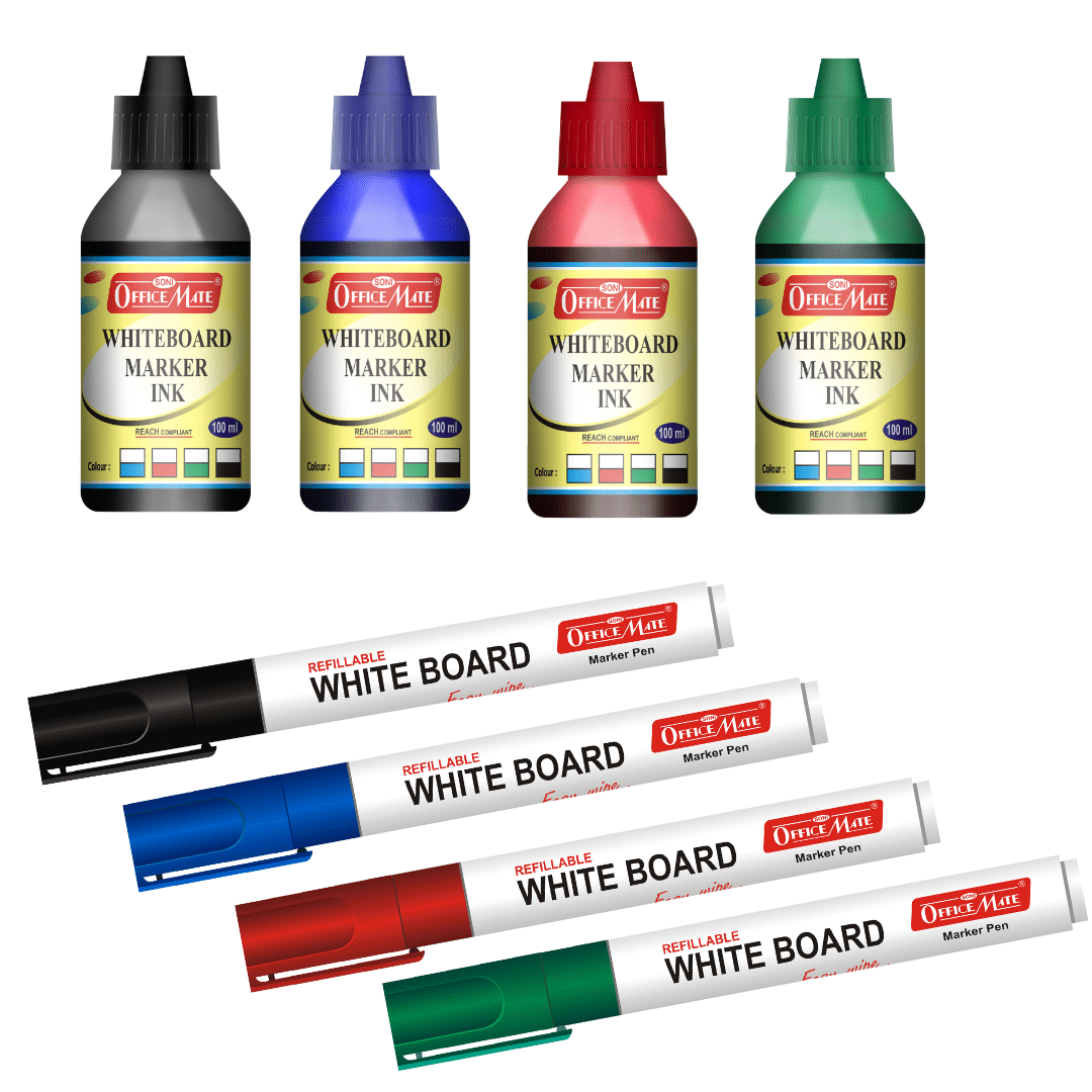 This refill ink creates bright, easy-to-see colors on the board. We provide a variety of colors, including black, blue, red, green, and more. All these colors look bold and clear on a whiteboard surface. They are designed to stand out against the white background, making text and drawings easy to see from far away.