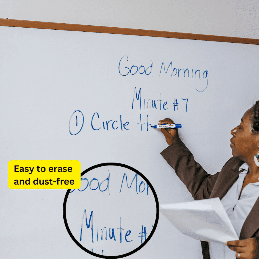 Yes, the ink dries in seconds when applied to a whiteboard. It has a fast-drying formula, so you won’t have to worry about smudging your writing as you move across the board. This quick dry time also means multiple people can write and erase quickly without waiting for the ink to set.