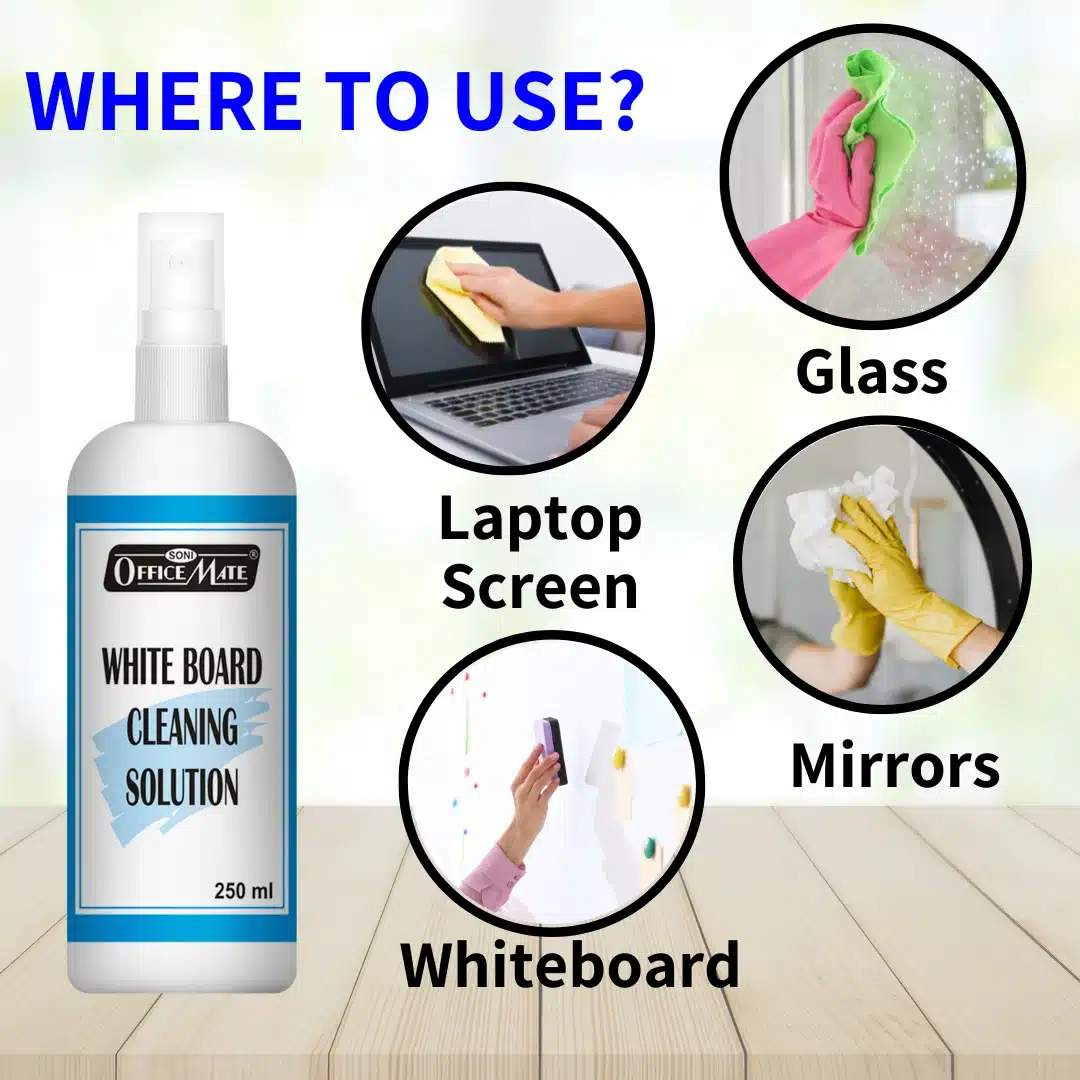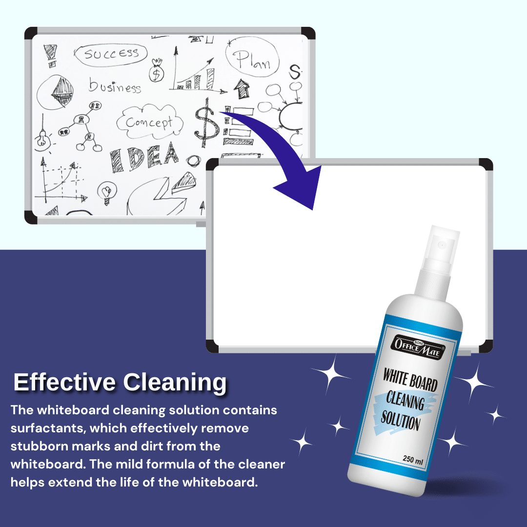 Soni officemate presents the quality whiteboard cleaning solutions which will ensure a complete clean-up with no trace of any mark, as if you are starting ‘afresh’.Non-Hazardous, Safe And Eco-Friendly, White cleaner with a conditioning agent., Easy to spray on board