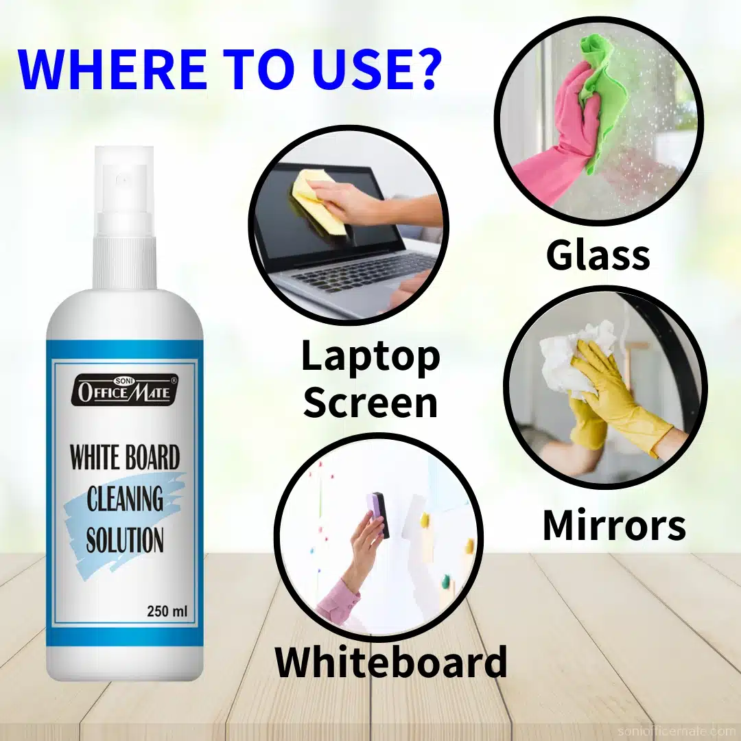 Cleaning Solutions are easy to clean – To Maintain Cleanliness & Shine of the White Board.