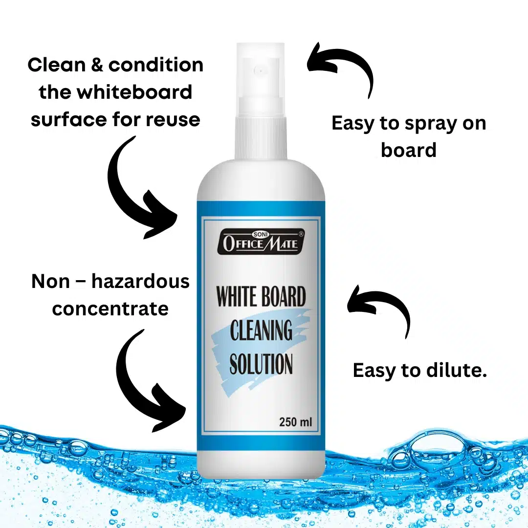 Soniofficemate Whiteboard Cleaning solution is specifically designed to clean and refresh any white boards.