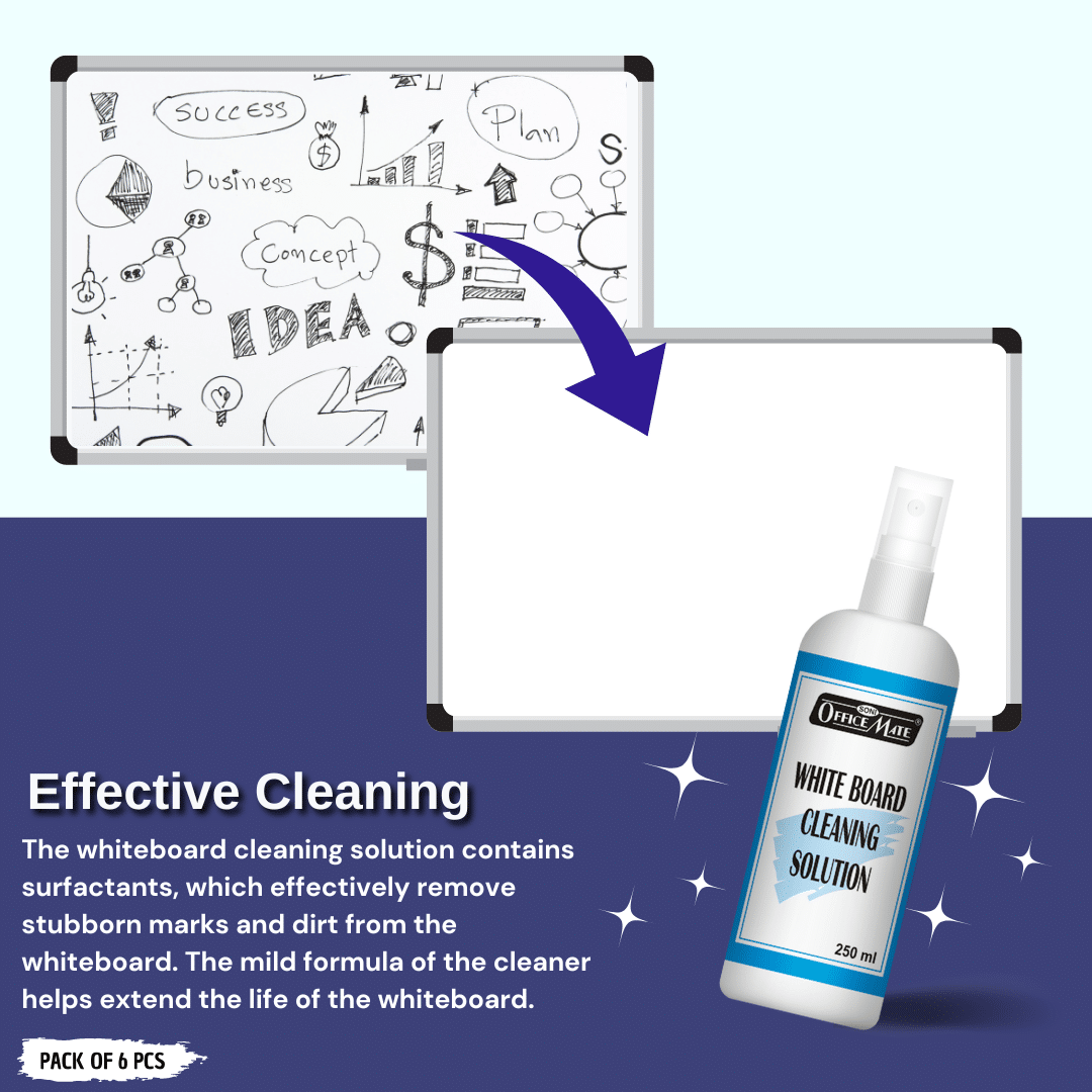 Whiteboard Cleaning Solution comes in a handy spray bottle pack which evenly spray and makes it easy to apply to your board.