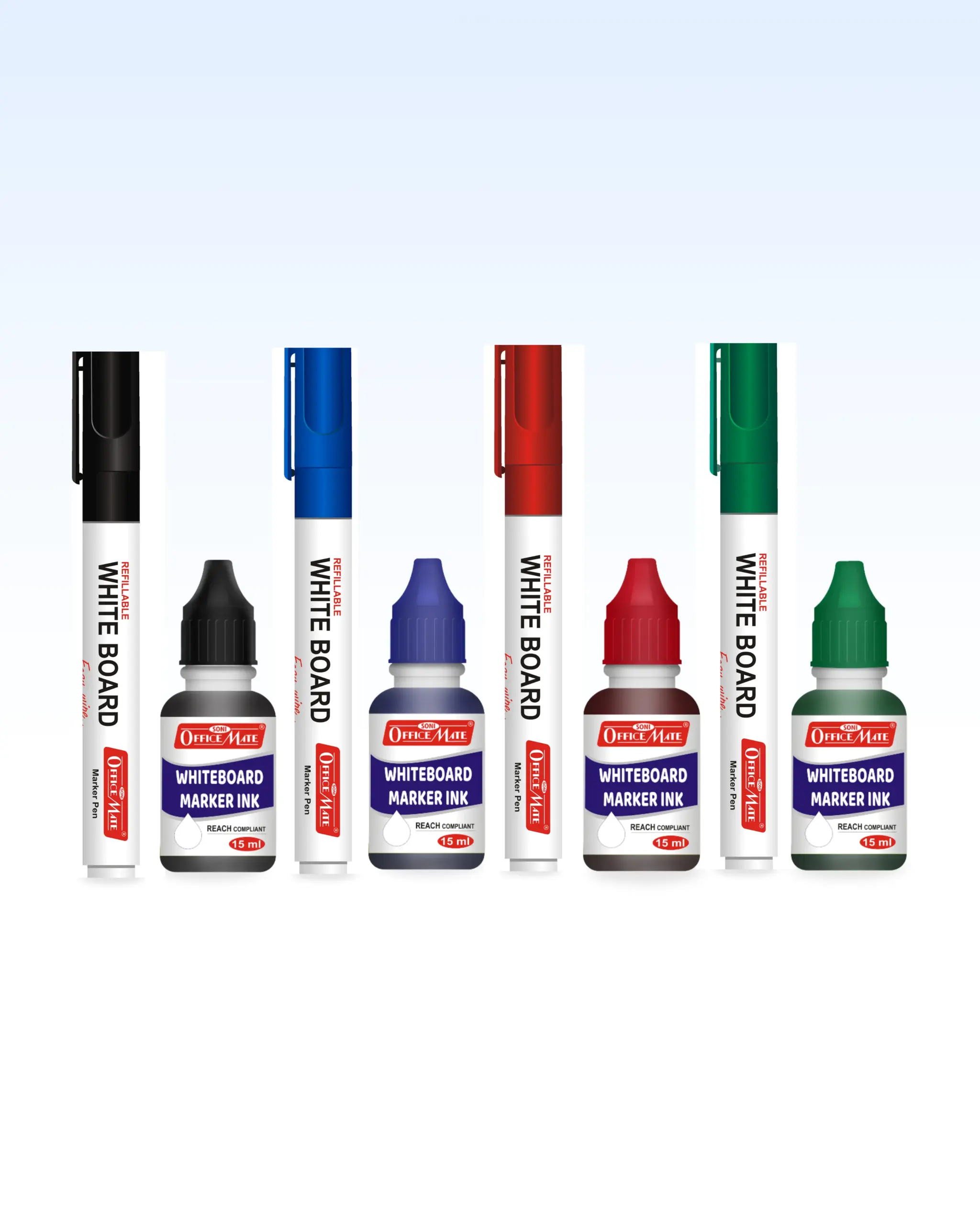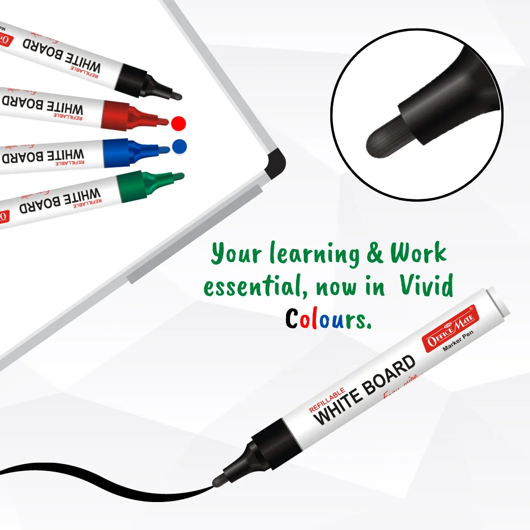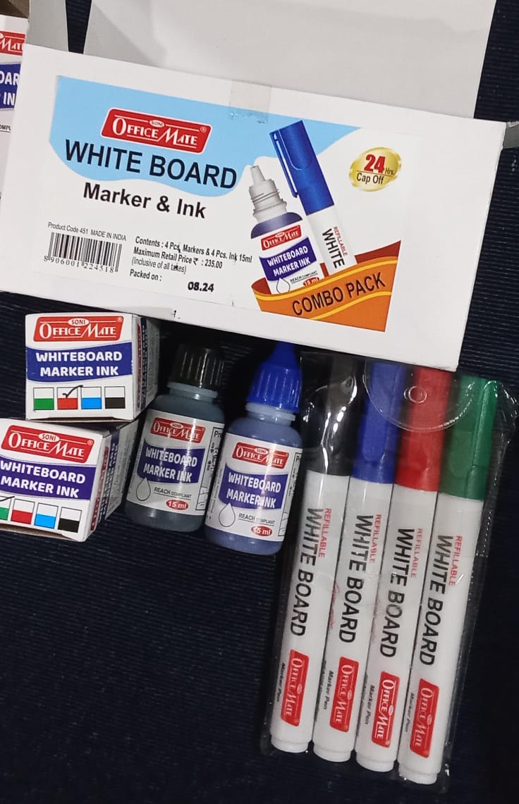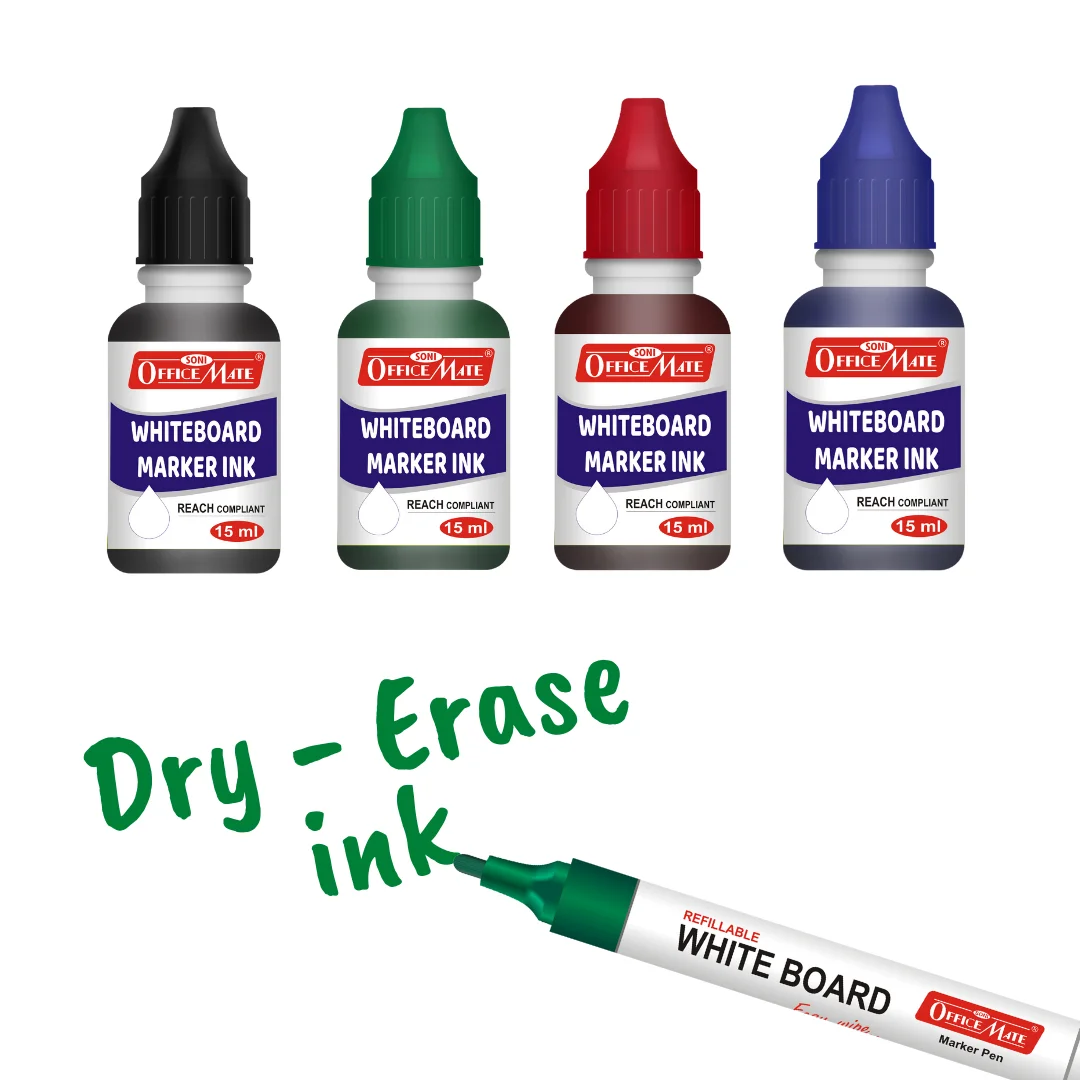 Combo is a must-have for anyone who uses a whiteboard regularly! With 4 vibrant markers (black, blue, red, green) and matching 15ml ink refills, it’s perfect for long-lasting use and effortless writing.
