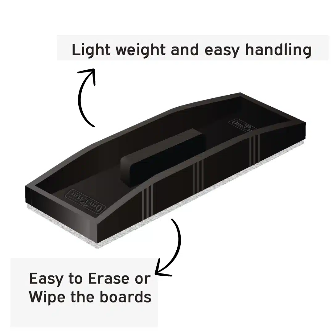 A lot of dried ink particles will eventually build up on the duster's felt, particularly if you use the board frequently. There are several ways to clean the duster: Dry Clean: Just clap or tap the duster against your hand while it's outside or over a trash can. A significant portion of the ink dust that has been trapped in it will be removed by doing this. Some of the chalky ink residue will show through. Vacuum: To remove the dust from the felt, use an attachment for your vacuum. Simply move it over the surface several times. This is clean and functions well. Wash (if applicable): You can use mild soap and water to clean the detachable felt pads found on some dusters. If that's the kind of duster you have, you can hand wash the felt in cool soapy water, rinse it well, and then let it air dry completely before reattaching and using it. (A damp duster will smear marker ink, so make sure it's completely dry.) For dusters without detachable pads, you should usually vacuum or dry clean instead of soaking the entire thing because the glue or internal components may not like it. Cleaning the duster on a regular basis will extend its lifespan and maintain optimal erasing performance, preventing you from simply spreading old ink.