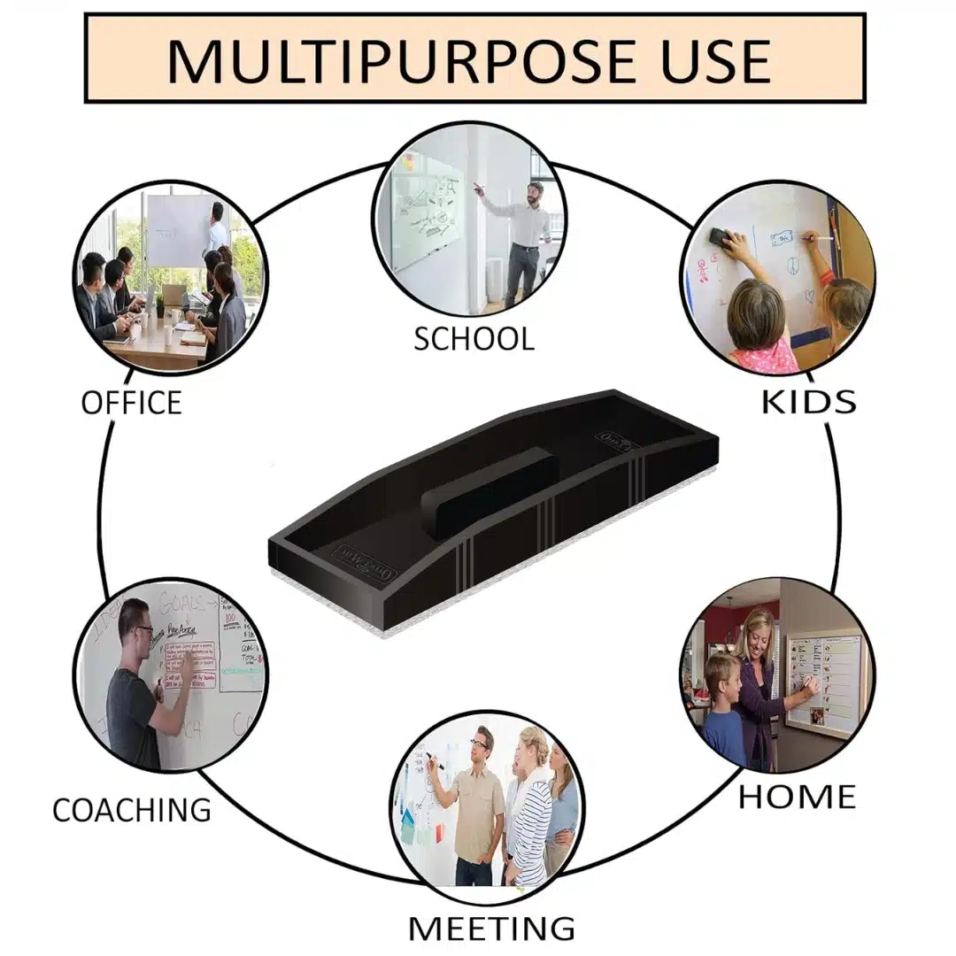 Indeed, the aforementioned whiteboard duster is made to function well on all common whiteboard surfaces. This includes the more expensive porcelain/enamel whiteboards, glass dry-erase boards, and the more popular melamine boards. Dryerase ink markings are easily removed from these surfaces by the duster's felt erasing surface. It cleans them without causing any scratches. Therefore, this duster should effectively remove the ink markings from any kind of whiteboard.