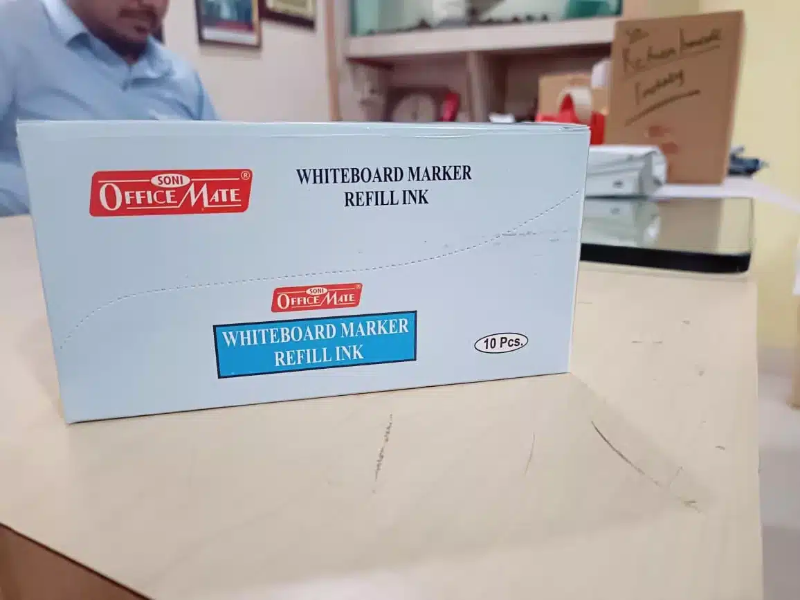 The Soni Officemate Whiteboard Marker Ink 15ml ensures crisp and reliable writing on whiteboards, making my presentations a breeze