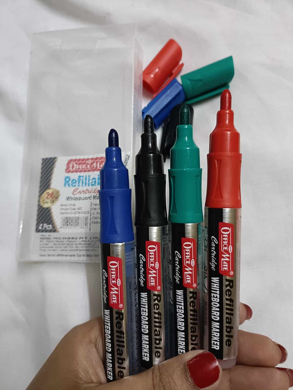 DESCRIPTION -And here comes our new product – Markers with plug-in cartridges, make a mark on what you present in offices, schools, hospitals, etc. The marker is specially designed so that your words are emphasized not just on whiteboards, but on various other surfaces; when you need to erase it, it comes off easily. It’s refillable – change the cartridge. However, with a high cap-off time, the refilling parameter is as good as obsolete for the marker. Our inks have a long shelf life. Includes cartridge with 3ml ink. To start, pump 10 times and wait for the ink flow. Refillable Cartridge whiteboard marker in a pack of 4 pcs.
