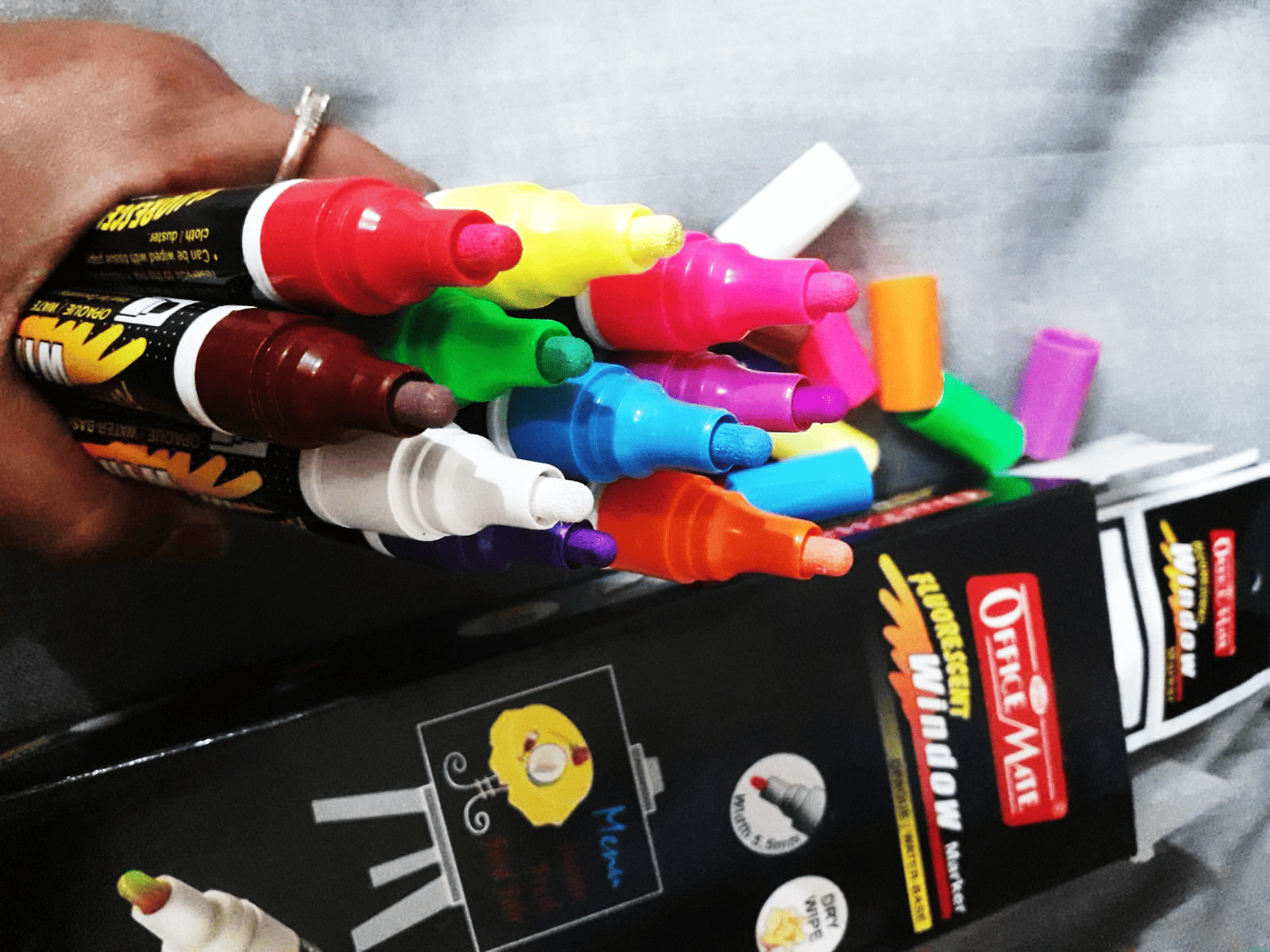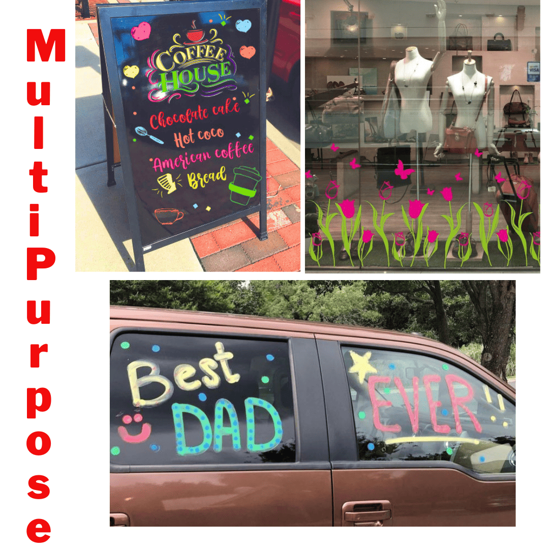 These markers are weather-resistant enough for short-term outdoor use, making them ideal for things like weekend events, car window messages, or temporary storefront displays. The ink holds up well against light rain—water typically beads off without smudging—and the colors stay vibrant under sunlight for several days. For longer outdoor use (several weeks or more), you might notice some fading or minor wear, especially with heavy rain. So while they’re great for temporary outdoor signage, they’re not meant to replace permanent outdoor paint.